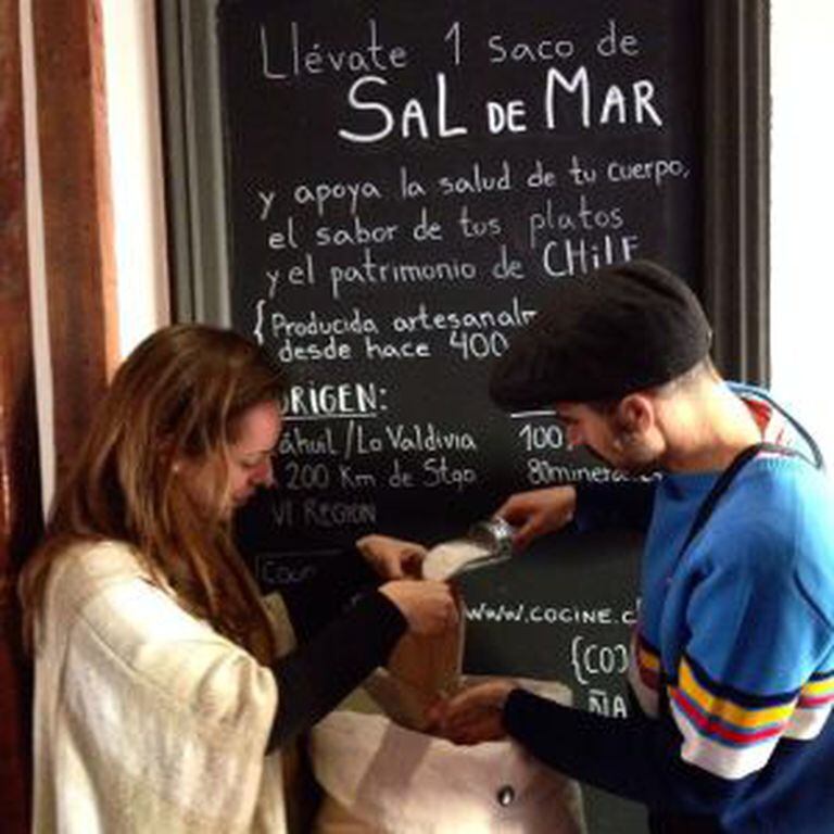 Eu soube dos salineiros de Cáhuil e Lo Valdivia pelo livro La Sal, editado pelo fotógrafo José Luis Rissetti, e alguns meses depois me encontrei com eles, sua realidade e seu impressionante produto, em uma das salas de conferências do Ñam, o evento culinário que Santiago realiza todos os anos com o início do outono. Chegaram pela mão da Cocine, a fundação que busca o fortalecimento das organizações de produtores, incentivando a projeção pública de seu trabalho e a abertura de mercados para o sal marinho de Cáhuil.