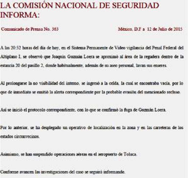 O túnel, fruto de meses de trabalho, desperta todo tipo de perguntas. Como é possível cavar em um presídio de segurança máxima sem que ninguém perceba? Quanto tempo decorreu da fuga até que se tocasse o alarme? Com que apoios internos contou El Chapo? O Executivo mexicano foi incapaz de esclarecer essas questões. O titular da Comissão Nacional de Segurança, Monte Alejandro Rubido, visivelmente abalado, limitou-se a ler um comunicado com os dados básicos e lembrar que havia colocado em prática um protocolo de segurança. A operação incluiu o fechamento do aeroporto de Toluca, onde se localiza o presídio, e a mobilização de centenas de policiais. Doze horas depois da fuga, ainda não havia nenhum resultado.