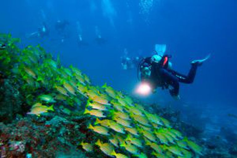 O top 10 para ver grandes animais. Existem mergulhos simples em muitas das 13 ilhas principais, com encontros garantidos com pinguins, leões marinhos, tubarões-martelo, tartarugas, grandes cardumes de arraias... Mas as imersões mais excitantes estão nas longínquas ilhas de Wolf e Darwin (somente para mergulhadores experientes). Em agosto e setembro é possível ver enormes tubarões-baleia e cardumes com centenas de tubarões-martelo, além de outras dezenas de tubarões-seda, de Galápagos, golfinhos, tartarugas... É como mergulhar no Jurassic Park.