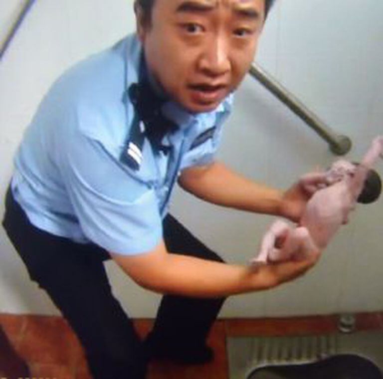 Inicialmente o policial cogitou pedir reforços para desmontar completamente o vaso sanitário, mas, para não perder mais tempo, decidiu tentar retirar a menina com as próprias mãos. "Ela não parava de chorar. Voltei a olhar e achei que deveria tentar tirá-la, apesar de as chances serem ínfimas”, disse Qian. Imagens gravadas pela Polícia pequinesa mostram o agente ajoelhado e com o braço direito dentro da privada, tentando puxar o bebê.