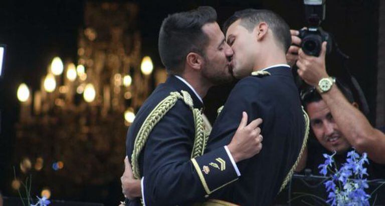 Eles são colegas e membros do Corpo Nacional de Polícia, da Espanha. Depois de cinco anos de relacionamento, casaram-se no sábado em uniforme de gala no Recreo na Cadenas da Real Escola Andaluza de Arte Equestre de Jerez de la Frontera. Chema, de Jerez, e Jonathan disseram o primeiro “sim” entre policiais do mesmo sexo: foi o primeiro casamento gay entre policiais na Espanha a ser publicamente conhecido.
