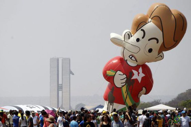 No gramado em frente aos anti-petistas havia dois bonecos de plástico gigantes, o Pixuleco, representando Lula, e a “Pinóquia” ou “Dilmandioca”, uma sátira da presidenta Rousseff com o nariz grande. A ventania foi um adversário desses dois bonecos que passaram mais tempo desinflados do que cheios, devido a alguns rasgos que tiveram de ser reparados pelos organizadores. “Vim tirar um selfie, mas os dois bonecos estão murchos, caídos. Antes quem tivesse caído fosse a Dilma”, afirmou o vendedor Carlos Freitas, de 21 anos.