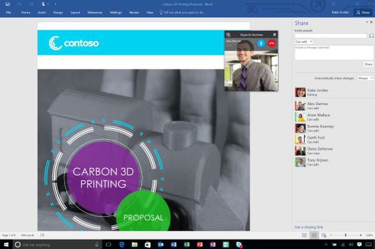 Outra novidade do Office 2016 é uma maior integração com o Skype, mas para isso é preciso ter a versão corporativa. Por exemplo, a partir do calendário do Outlook, é possível agendar uma conferência em grupo ou ver quem entre seus contatos está disponível para conversar. Também é possível fazer anotações com o One Note em uma reunião do Skype ou iniciar uma apresentação do PowerPoint para as pessoas com as quais realizamos uma conferência.