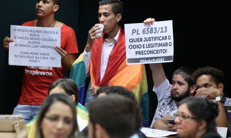 Entre protestos e discussões, o Estatuto da Família foi aprovado por uma comissão especial de deputados na Câmara na tarde desta quinta-feira. O texto define como família apenas a união entre homem e mulher, o que exclui a união homoafetiva de direitos como herança, guarda dos filhos e a inclusão do(a) parceiro(a) em planos de saúde, dentre outros direitos.