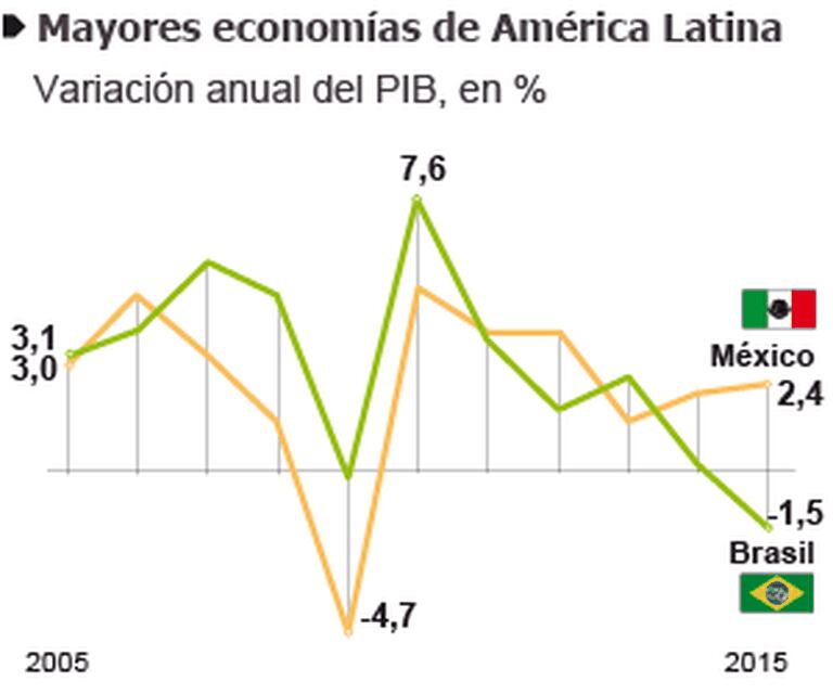 Em alguns deles houve uma reviravolta: à nítida recessão da Venezuela e ao retrocesso argentino se somou a economia brasileira, cujas previsões pioram a cada mês. O mercado internacional de matérias-primas oferece o sintoma mais claro de que algo não vai bem, com o petróleo como termômetro: se após a Grande Recessão o cru recuperou com rapidez o valor de 100 dólares (aproximadamente 394 reais), o que se interpretou como sinal de força da demanda emergente, e particularmente da China, agora, o argumento se reverteu. O preço do barril ronda os 50 dólares (197 reais) e o FMI considerou como um fato, esta mesma semana, que os preços baixos se prolongarão pelo menos até 2017.