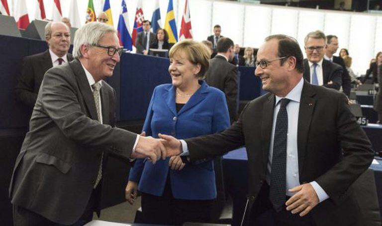 Um quarto de século depois da queda do Muro, a Europa enfrenta a crise de refugiados com o risco de sucumbir a um perigoso recuo nacionalista. A chanceler alemã, Angela Merkel, e o presidente francês, François Hollande, compareceram nesta quarta-feira ao Parlamento Europeu (Eurocâmara) com uma mensagem de unidade e de alerta ante os reflexos nacionalistas que reaparecem aqui e acolá. “O retorno às fronteiras nacionais, sem unidade para combater a crise, seria o fim da Europa”, disse Hollande. “O debate não é entre mais ou menos Europa. É entre sua afirmação ou seu fim”, enfatizou o presidente. “Todos os países têm de responsabilizar-se pela chegada dos refugiados sem cair no nacionalismo”, reforçou Merkel.