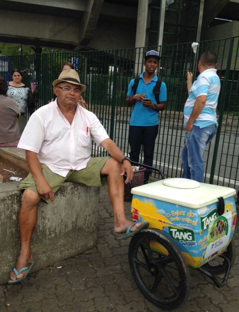 A dificuldade em encontrar um outro emprego na área, visto que não tinha mais a mesma condição de carregar materiais, como fazia antes do derrame, somada à necessidade de pagar as contas em dia, levou Souza a comprar um carrinho de picolé, por 600 reais, e sobreviver com a venda do produto nas ruas.“Comecei com um isopor de picolé, mas eu não conseguia carregar o peso e ficar muito tempo em pé”, explica. Com o carrinho, pode se fixar em um ponto da cidade e vender os sorvetes para as milhares de pessoas que passam todos os dias pelos terminais. Somente no Terminal Armênia, trafegam mais de 20.000 pessoas nos horários de pico, conforme estimativas do Metrô.