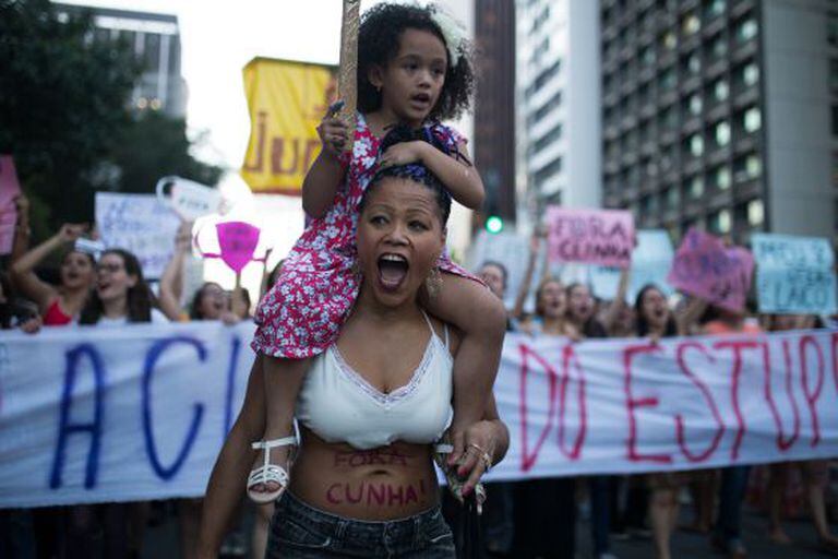 Na sexta foi a vez de São Paulo. O grito cresceu, com 15.000 mulheres repetindo em plena avenida Paulista o que as cariocas já haviam gritado: "Fora Cunha". "Machismo mata, feminismo liberta." "Se cuida, se cuida, se cuida seu machista. A América Latina vai ser toda feminista." O ato se repetiu no sábado. Um movimento inédito no Brasil, oitavo no mundo em número de mulheres assassinadas e com mais de 500.000 estupros por ano registrados, e repetidos casos de agressões por parte de seus parceiros. As manifestantes de Porto Alegre sentiram isso na pele, ao que parece. No domingo, algumas gaúchas afirmaram ter sofrido agressões durante uma feira de livros feministas por parte da Brigada Militar da capital, embora não tenham registrado boletim de ocorrência por temer represália, segundo o jornal Zero Hora.