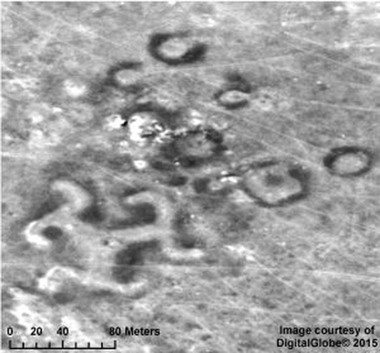 Segundo o jornal The New York Times, a confirmação do achado de Dey por parte da agência espacial americana é o maior sinal de interesse oficial em se investigar o local. “Nunca tinha visto nada parecido; achei extraordinário”, disse ao jornal o cientista de biosfera da NASA, Compton J. Tucker. As figuras, no mínimo 260, formam quadrados, cruzes, linhas e anéis de tamanhos variados. Com até 8000 anos de idade, elas são constituídas por valetas, terraplanagens e montes de terra – que têm um metro de altura por 12 de largura. Um quadrado feito com 101 montes e uma forma semelhante a uma suástica, feita de madeira, foram as descobertas que mais chamaram a atenção.