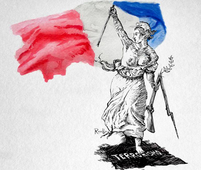 12. O autor Toni Reollo também enviou ao EL PAÍS esta charge inspirada em A Liberdade guiando o povo, de Delacroix.