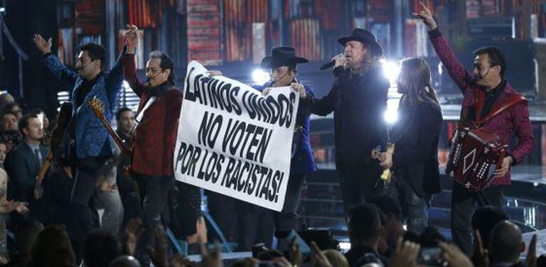 Foi a atuação estelar de um show que é tanto um concerto como uma entrega de prêmios. Os chamados “momentos Grammy” deste ano incluíram Alejandro Sanz com Paula Fernandez e Mariachi Sol, do México. O espetáculo foi um banho de cultura mexicana com Maná e os Tigres del Norte cantando juntos Somos Más Americanos. Eles exibiram um cartaz com um apelo aos latinos dos Estados Unidos: “Não votem nos racistas”. Foram muitas as referências diretas a qualquer hipotético candidato atual. Os dois grupos tocaram juntos na sala de imprensa com a mesma mensagem: “São 50 milhões nos EUA. Têm o poder de votar num candidato que faça uma reforma migratória” para os trabalhadores “que põem a comida na mesa dos americanos”, disse Fher Olvera, vocalista do Maná.