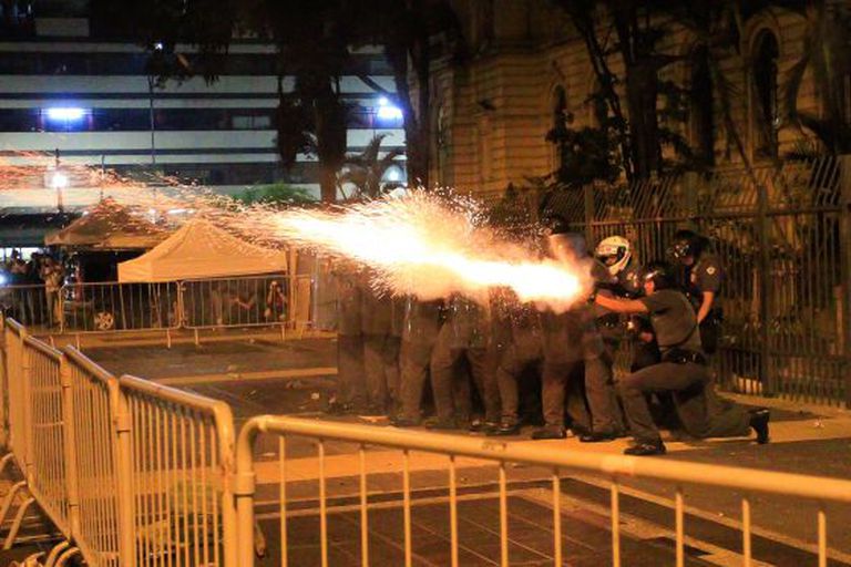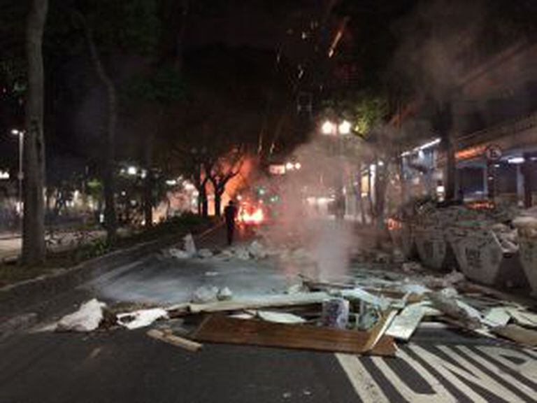 Sem motivo algum, um PM mirou em direção à reportagem do EL PAÍS e disparou spray de pimenta. A partir de então, a região da avenida São Luís ficou com diversas barricadas, lixo espalhado e incendiado, caçambas reviradas e pontos de ônibus depredados. E foi iniciada uma corrida da polícia atrás dos manifestantes, que correram pela Consolação em direção à avenida Paulista, mas naquele momento o ato já havia acabado.