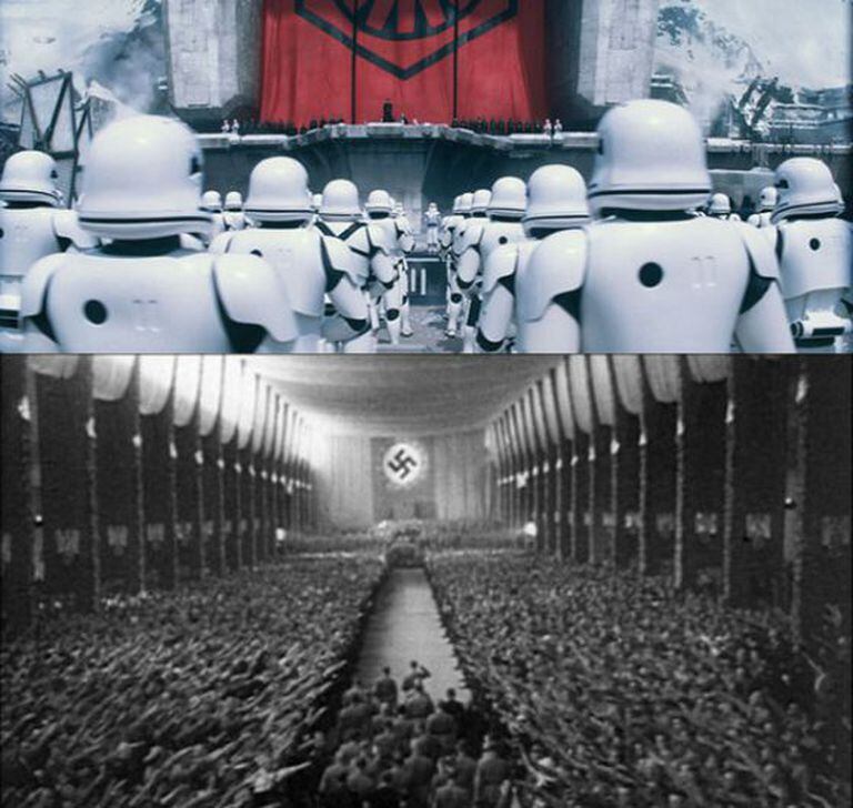 A fotógrafa e diretora alemã Leni Riefenstahl foi a cineasta oficial da Alemanha nazista. Sua obra mais importante naquela época foi Triunfo da Vontade, um documentário de propaganda. Daí sai a cena final de Uma Nova Esperança, com a entrega de medalhas. E daí sai uma cena importante também de O Despertar da Força com as forças da Primeira Ordem atentas a um discurso feito pelo General Hux.