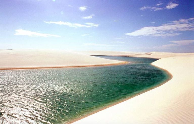 Você está no meio de um deserto. O sol é forte e o vento constante joga a areia branca contra o seu corpo cansado e suado, mas calma: atrás de cada uma das dunas à sua frente há um oásis. Aliás, nesse amontoado de dunas brasileiro conhecido como Lençóis Maranhenses existem cerca de 5.000 oásis, ou lagoas formadas graças ao acúmulo da água das chuvas que caem na região de janeiro a junho e fazem o período de maio a agosto a melhor época para visitá-la.