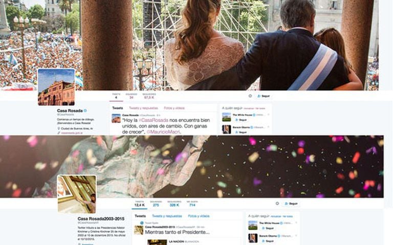 O trauma da mudança de comando na Argentina continua aberto. A ex-presidenta Cristina Fernández de Kirchner não só se negou a comparecer à posse de seu sucessor, o liberal Mauricio Macri, mas antes de deixar o poder também determinou que a conta do Twitter da Casa Rosada (sede presidencial da Argentina), @CasaRosadaAR, ficasse em mãos de seus militantes e passasse a se chamar Casa Rosada 2003-2015 — ou seja, os 12 anos em que o kirchnerismo governou. Doze dias depois de assumir o poder, o Governo de Macri respondeu criando uma conta própria da Casa Rosada, @CasaRosada.