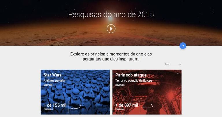 Pelas informações reveladas pelo buscador a sensação de exaustão dos usuários de internet no final deste ano encontra justificativa. O desastre em Mariana e os atentados em Paris foram campeões de audiência e também destaques entre as buscas do Google. Não houve trégua, a intensidade informativa e noticiosa se acentuou somando relevantes acontecimentos internacionais como o terrorismo do Estado Islâmico e a guerra na Síria, à crise política e econômica brasileira, manifestações de rua e o processo de impeachment, que juntos, deram ao final de 2015 a sensação de ser interminável. Mas não foi só isso que povoou o mundo informativo neste ano. Virais, cinema, ativismo e formas de ajudar outras pessoas também tiveram destaque.