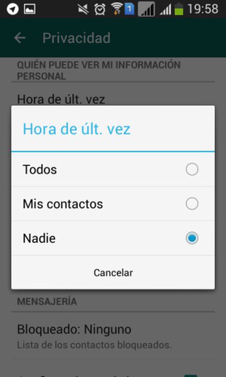 Tanto no Android como no iOS, na parte inferior do mesmo menu “privacidade” onde você modifica o item “visto por último”, há uma marcação ativada chamada “confirmações de leitura”. Se desativá-la, seus contatos deixarão de ver o duplo tique azul quando você ler as mensagens, mas você tampouco receberá essa confirmação quando os outros lerem as suas.