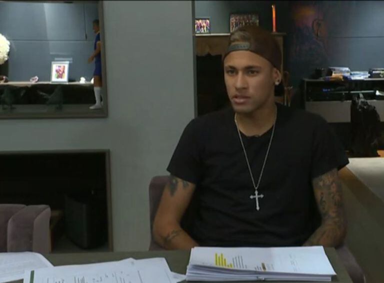 O tom irritadiço foi suavizado quando ele admitiu a possibilidade de terem cometido algum “erro”. “Se a gente cometeu algum erro tributário, ou [houve] alguma coisa que a gente fez errado, não tem problema nenhum. Diz: ‘Vocês erraram’. Agora, nos acusar de sonegação fiscal ou de adulterar documentos. Isso já é passar dos limites, né?”. Poucas foram as intervenções de Neymar na entrevista, mas, ao falar, o atacante tratou de garantir que continua a “jogar bola”. “Meu pai faz de tudo para que eu só jogue bola. Só que a partir do momento que a pessoa que você ama está sofrendo com isso, [passa] o dia inteiro falando disso, aí começa a doer. Porém, “quando eu entro em campo, esqueço todos os meus problemas. É um dom de ser mais focado no que eu amo fazer”.