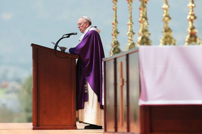 Francisco rezou uma missa em Ecatepec, um dos municípios mais pobres e violentos do México