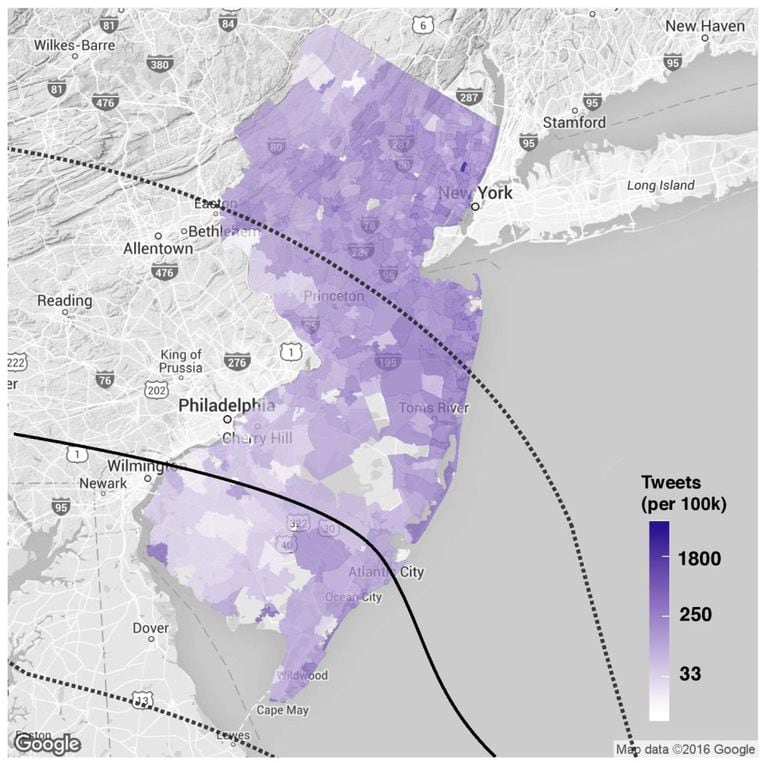 O estudo, além disso, permite o desenho de mapas muito detalhados, chegando até mesmo ao nível dos códigos postais. Acertar a resolução desse mapa foi uma das tarefas mais difíceis enfrentadas pela equipe de pesquisadores. Reconhecem que não inventaram nenhum método estatístico novo (os cálculos necessários já existiam muito antes do Twitter), mas precisaram aperfeiçoá-los. “Tentamos extrair dados e relações na escala de códigos postais, mas é preciso tomar cuidado, por verificar tão detalhadamente cada pequena área, podemos não obter dela dados suficientes para tirarmos conclusões sólidas”, diz Manuel Cebrián. Para a sorte do estudo, o Twitter lança “um volume enorme” de dados de regiões como as atingidas pelo Sandy, onde a rede social está tão implantada.
