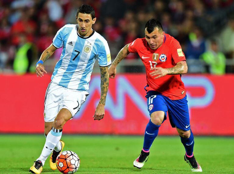 A Argentina venceu o Chile por 2 a 1, de virada, e chegou aos oito pontos nas eliminatórias sul-americanas para a Copa do Mundo de 2018, na Rússia. Jogando em casa, os chilenos sofreram a segunda derrota no torneio e ficaram nos 7 pontos na tabela. A Argentina venceu seu segundo jogo e foi a 8 pontos. O líder Equador tem 13. Apesar da vitória, o time de Messi começou atrás no placar. Mesmo sem Vidal, Aránguiz, Valdívia e Vargas,o Chile começou muito melhor mas sofreu a primeira baixa na partida aos 6 minutos, quando Fernández sentiu lesão na coxa e foi substituído por Francisco Silva. O primeiro gol da partida saiu 4 minutos depois, quando Gutiérrez aproveitou escanteio cobrado por Orellana, subiu mais que a zaga e cabeceou sem defesa para Romero: 1 a 0. Só que aos 16 minutos, foi a vez de Díaz cair no gramado e pedir atendimento médico. Enquanto o Chile estava com um a menos, a Argentina foi rápida e se aproveitou. Di María acertou belo chute de dentro da área e empatou: 1 a 1. Aos 24, já sem dois titulares, os chilenos levaram a virada. Mercado aproveitou bola na área e chutou com precisão: 2 a 1. Antes do final do primeiro tempo, o time da casa quase marcou o segundo. Gutiérrez, de novo, apareceu bem na área e finalizou bem. A bola passou raspando o travessão argentino e saiu.