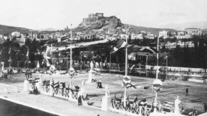 Os primeiros jogos olímpicos da era moderna foram realizados durante duas semanas na capital grega, então uma pequena cidade de 130.000 habitantes herdeiros do espírito dos Jogos que na antiguidade existiram durante séculos no belo e fértil vale de Olímpia, não muito distante de Atenas. Foram inaugurados pelo rei Jorge I da Grécia no Estádio Panathinaiko, reconstruído com mármore pentélico, tal como o havia erguido 20 séculos antes Herodes Ático, graças à contribuição generosa de George Averoff, magnata, multimilionário e mecenas.