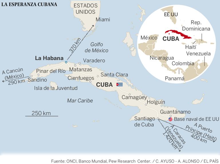 Com a prosperidade distante, a fuga de jovens não para. Pelo contrário, está aumentando pelo medo de que Washington coloque no baú da Guerra Fria sua norma de regularização express para qualquer cubano que ponha os pés em solo americano. Em 2015, cerca de 70.000 cubanos deixaram a ilha em direção aos Estados Unidos, um movimento que não se via há muito tempo e que somou 43.000 imigrantes sem papéis, vindos principalmente da fronteira terrestre com o México, 20.000 com vistos e cerca de 4.500 interceptados ao cruzar por mar o estreito da Flórida, circunstância sob a qual se estabelece que devem ser repatriados. A emigração intensifica o problema demográfico e de mão de obra em Cuba, o país com maior expectativa de vida da América Latina, depois do Uruguai.
