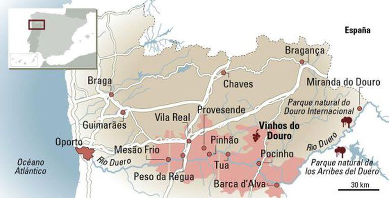 O coração do Douro se conquista com a fórmula do físico Mark Hadley. Segundo o cientista, a serpenteante N-222 é a rota perfeita: dez segundos em reta e um em curva durante 27quilômetros até desembocar na ponte de ferro de Pinhão. Rio abaixo se chega, em uma centena de quilômetros, ao Porto e sua desembocadura no Atlântico; rio acima, outros tantos quilômetros até Barca d’Alva, fronteira com a Espanha, que renomeia o rio de ouro. Pinhão, pois, está no centro da região vinícola mais antiga com denominação de origem, a do Douro (1756), e só.