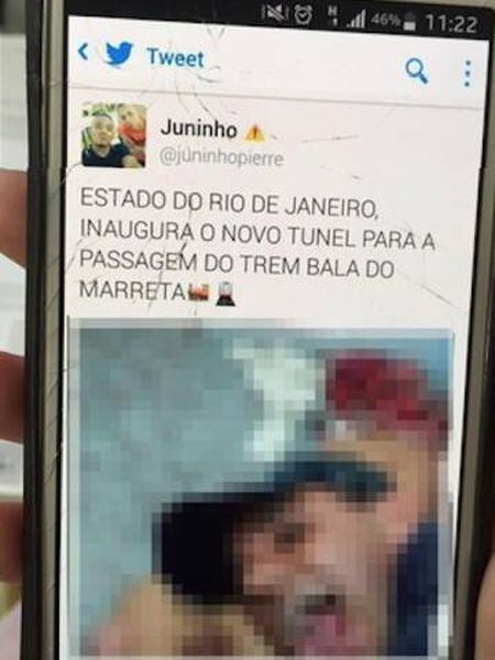 Quem contou essa história primeiro, porém em tom jocoso, foi o usuário do Twitter @michelbrazil7. Michel postou inicialmente o vídeo, acrescentando entre risos os comentários de que “amassaram a mina” e “fizeram um túnel na mina, mais de 30”, em referência à violação grupal. Mesmo após a forte onda de protestos pelo seu post – superior à de compartilhamentos do vídeo, que também foi intensa, apesar de configurar crime de acordo com o Código Penal Brasileiro – ele manteve sua decisão de não apagar as imagens, até ter de eliminar seu perfil da rede. Agora é buscado pela polícia como criminoso, tendo ou não participado do estupro (essa, se comprovada, será uma acusação adicional).