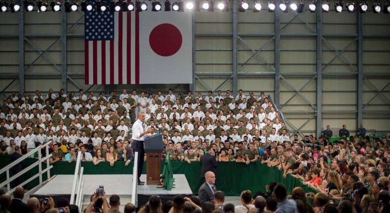 Obama se deslocou para Hiroshima a partir do parque natural de Ise-Shima, a cerca de 400 quilômetros dali, onde se realizou, durante dois dias, a reunião de cúpula de dirigentes do G7. Antes de chegar à cidade bombardeada em 1945, o presidente norte-americano se referiu à “grande aliança” entre Tóquio e Washington. Essas afirmações foram feitas diante das tropas norte-americanas na base de Iwakumi, na região oeste do país. Os EUA contam com cerca de 47.000 militares no Japão, que fazem parte de uma aliança de segurança constituída depois da Segunda Guerra Mundial. “Não devemos esquecer jamais que temos de honrar aqueles que deram tudo pela nossa liberdade”, disse o presidente diante de uma multidão de homens e mulheres uniformizados. “Tenho muito orgulho de vocês”, prosseguiu. “Esta é uma oportunidade para honrar a memória daqueles que perdemos na Segunda Guerra Mundial”.