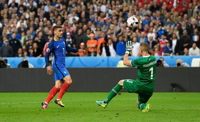 À estupenda cabeceada de Pogba se seguiu um terceiro gol que fez a Islândia se questionar. Como no passe de Matuidi no primeiro gol, a muitos metros de distância do destinatário, dessa vez foi o próprio Pogba que fez a ligação com Giroud. E ele deixou a bola para Griezmann, que ficou de frente para Halldorson sem ser detectado por nenhum radar islandês. 4-0 e confronto mais que liquidado antes do intervalo.