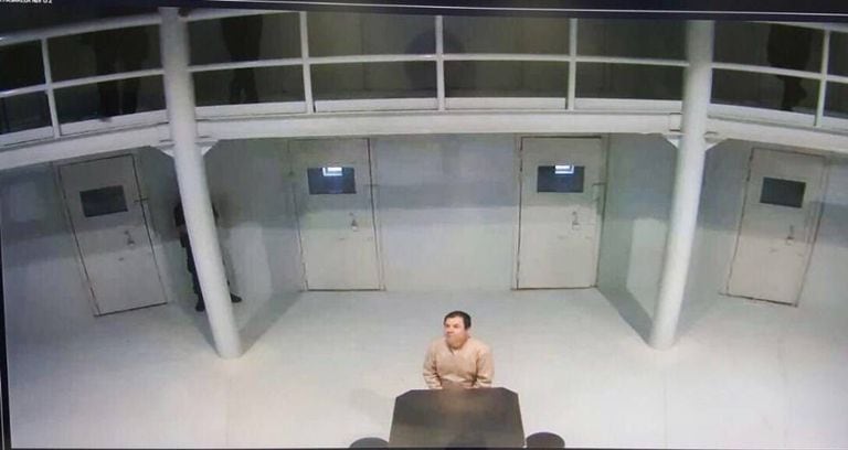 Na foto, o líder do cartel de Sinaloa aparece em seu uniforme marrom, sem bigode e na sala central da ala de segurança da prisão de Ciudad Juárez (Chihuahua). Para lá foi transferido repentinamente há dois meses. Capturado em 8 de janeiro em Los Mochis (Sinaloa), havia sido enviado primeiro à prisão de segurança máxima de El Altiplano, a fortaleza da qual escapou em julho de 2015 por um túnel de 1.500 metros. Neste presídio, depois de renovadas as medidas de segurança, foi detectada uma falha. Suas reuniões com os advogados e visitas à enfermaria obrigavam as autoridades carcerárias a tirá-lo do perímetro de segurança. Um ponto frágil que resultou em seu envio, com pés e mãos algemados, a 1.800 quilômetros ao norte, para a penitenciária de Ciudad Juárez.