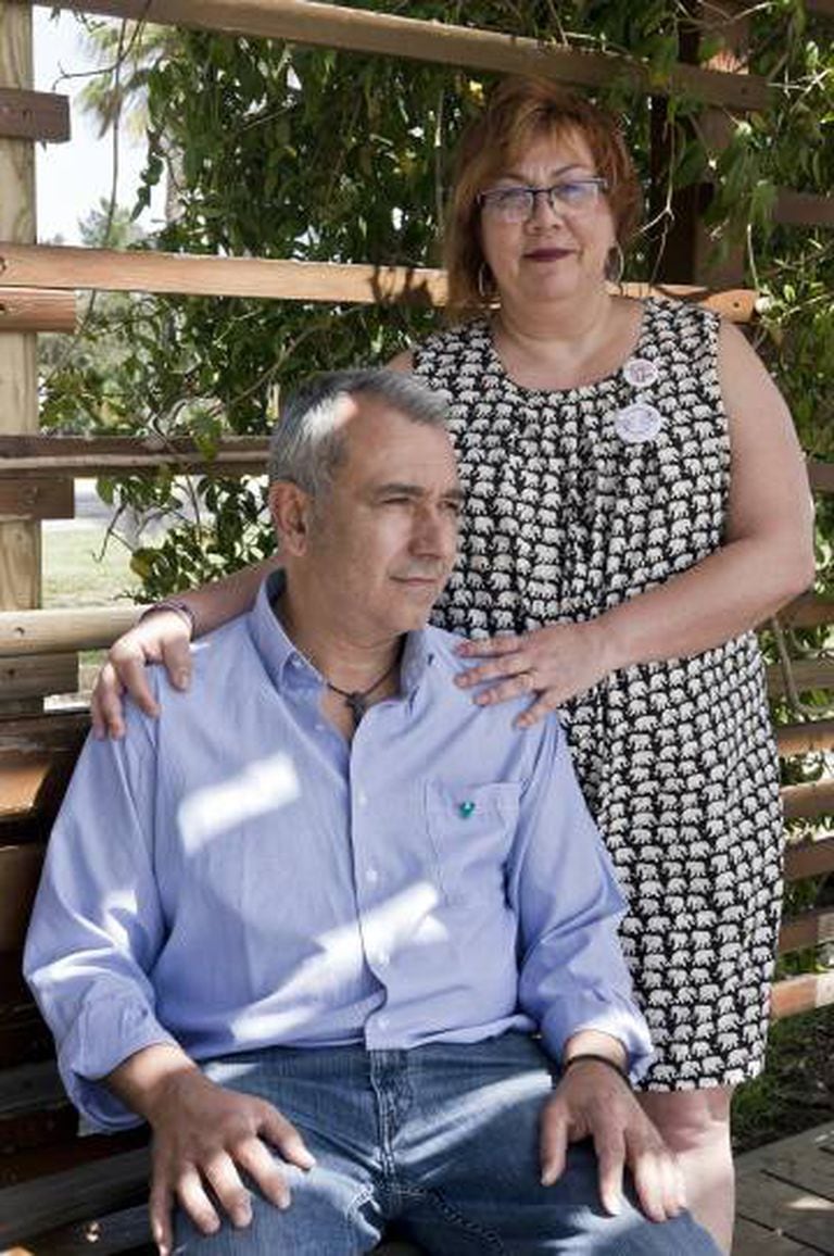 Mónica Rossi Palomar, 48 anos, funcionária do serviço social e vereadora da Esquerda Unida em Huelva. Manuel Eugenio García Serrano, 49 anos, sócio de uma empresa de economia social de comércio. Um de seus dois filhos, Jesús, de 18 anos, se matou em 15 de junho de 2013