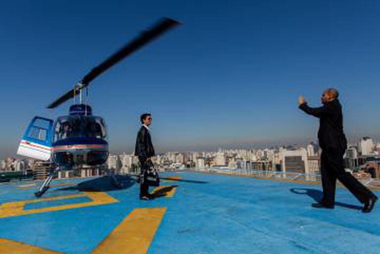 A ventania e o barulho provocados pelo movimento da hélice não impediam que um grupo de quatro jovens continuasse tentando tirar a selfie perfeita no heliponto localizado no topo de um prédio de 26 andares, em uma das zonas mais nobres da cidade de São Paulo. Era a primeira vez que os quatro analistas de sistema subiam em um helicóptero. A viagem feita no fim da manhã de uma segunda-feira ensolarada foi bem curta e durou cerca de 3 minutos. Eles saíram de um edifício na região da Berrini, perto do local onde trabalham, e voaram até o Hotel Blue Tree Faria Lima, no Itaim Bibi. Um caminho que, de carro, seria de 4 km e poderia demorar mais de 20 minutos dependendo do trânsito caótico da cidade. O sorriso estampado no rosto dos quatro naquela foto tinha menos a ver com a agilidade do trajeto do que com a oportunidade barata que eles conseguiram: pagaram pela experiência um total de 145 reais, sendo que, em média, só a taxa de pouso em um heliponto pode chegar a 500 reais. "Sobrevoar São Paulo foi incrível. No final, cada um gastou só 36 reais para vir voando almoçar aqui no Itaim", contava sorrindo Bruno Golveia.