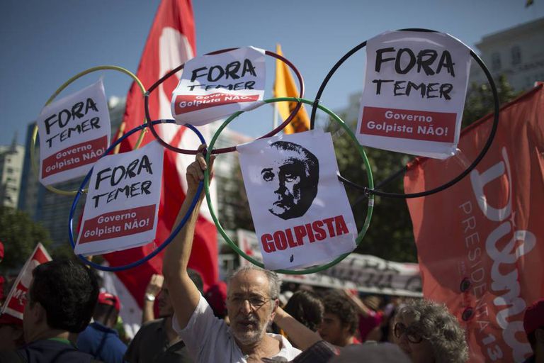 Apesar de também exigirem o fim do Governo Temer, o foco deste protesto foi fazer oposição à Olimpíada do Rio. Durante todo o percurso, tropas de choque da Polícia Militar, montada à cavalo e à pé, acompanhou a manifestação com escudos e cassetetes. Muitos agentes não tinham identificação e alguns levavam arma letal, como pôde comprovar o EL PAÍS.