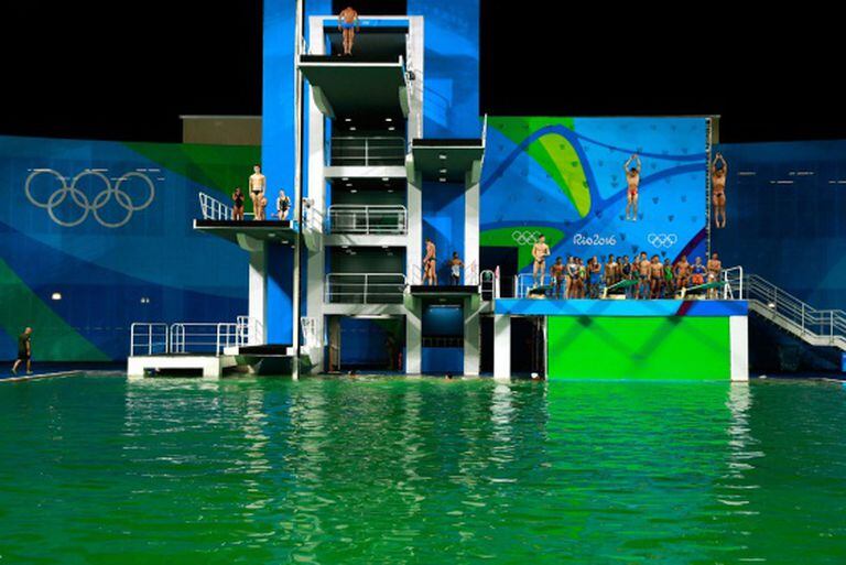 A água da piscina do Centro Aquático Maria Lenk, onde acontecem as provas de saltos de trampolim dos Jogos Olímpicos Rio 2016, passou de uma imaculada cor azul clara a um verde turvo de um dia para o outro. Os porta-vozes do comitê de organização dos Jogos não souberam explicar na terça-feira o motivo da transformação, mas afirmaram que as análises feitas até o momento confirmaram que “não existe nenhum risco à saúde dos atletas”.