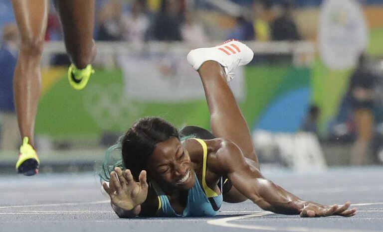 A atleta Shaunae Miller, das Bahamas, se atirou de peixinho sobre a linha de chegada para conquistar o título olímpico dos 400 metros rasos, na noite de segunda-feira, derrotando assim a norte-americana Allyson Felix, que havia assumido o primeiro posto alguns metros antes. O gesto desesperado de Miller lhe deu a vitória por sete centésimos, 49s44, contra 49s51 de Felix, que tentava se tornar a primeira mulher na história dos Jogos Olímpicos a conquistar cinco ouros no atletismo.