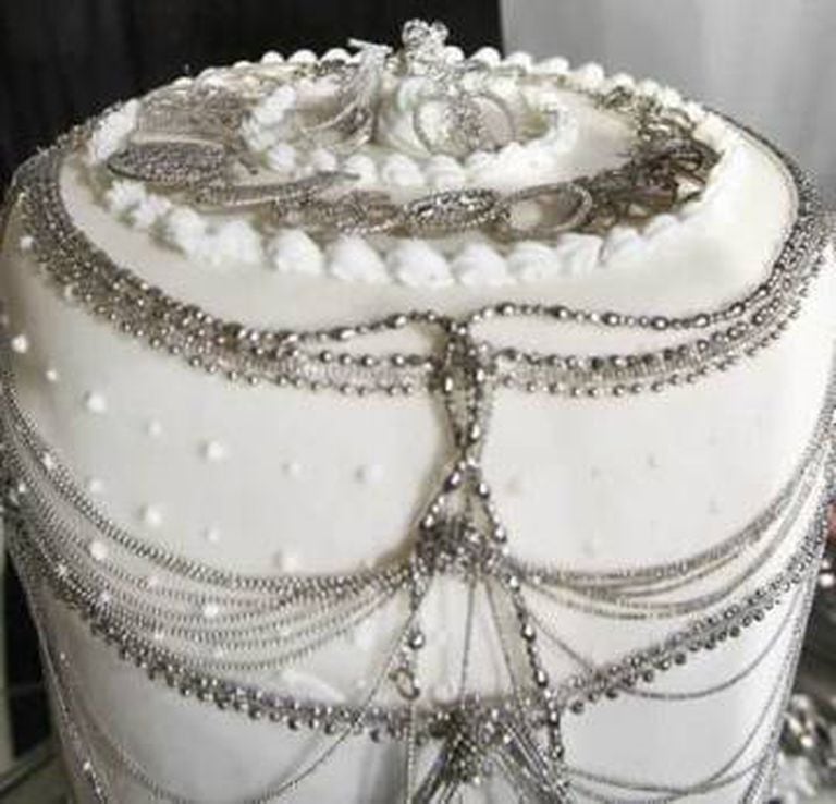Como nem tudo precisa ser de ouro para cobrir o que comemos, encontramos novamente no Japão o que é possivelmente a breguice mais cara da história. O mestre confeiteiro Nobue Ikara, fez um bolo de casamento branco travestido com colares de platina, pingentes, brincos, pérolas e outras joias para, em tese, representar a pureza da mulher. Imaginem durante o banquete todo mundo tirando pedras da boca. Claro que o delírio no mundo dos bolos parece não ter limite. Pode ser comprado a preço de leilão, um pequeno pedaço do bolo do casamento do príncipe William e Kate Middleton pelo modesto preço de 13.300 reias. Levando em conta que já se passaram 5 anos, quem se atreve a enfiar os dentes nele?
