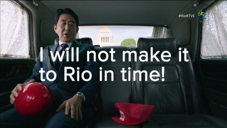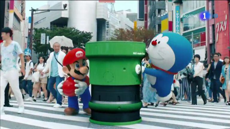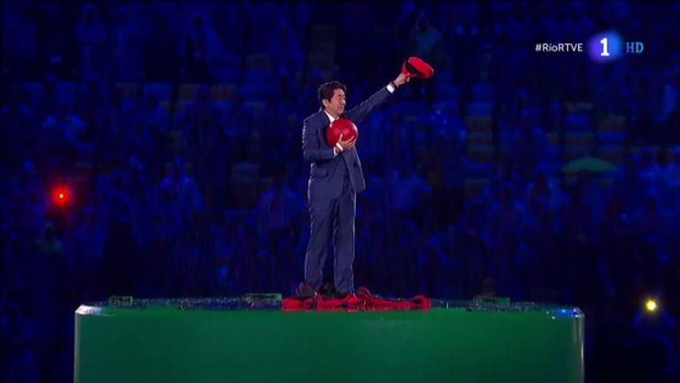 O famoso encanador, acompanhado de Doraemon, instala uma tubulação num conhecido cruzamento de ruas no bairro de Shibuya, em Tóquio, que atravessa a Terra na vertical até chegar ao Rio de Janeiro. Abe/Mario se joga na tubulação segurando a bola vermelha, viaja pelo centro do planeta e chega à outra ponta. De macacão e boné, o premiê japonês – novamente em carne e osso – aparece sobre o palco, bem no meio do Maracanã.