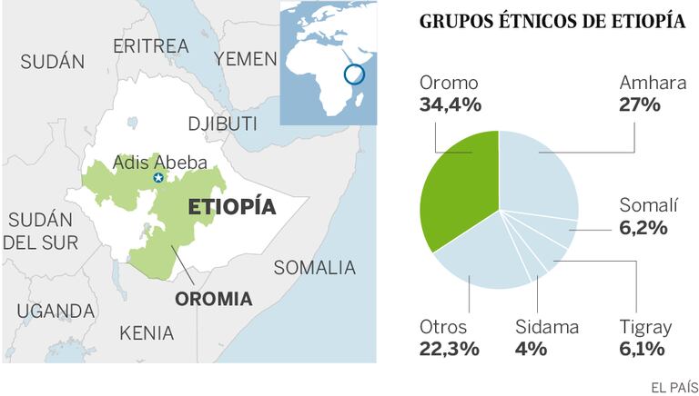 A etnia oromo – com mais de 30 milhões de pessoas distribuídas entre a Etiópia, o Quênia e a Somália – começou as manifestações contra o Governo em novembro, que desde então resultaram na morte de mais de 1.000 pessoas pela brutal repressão policial. Os oromo estão concentrados na região de Oromia, a maior – cuja superfície equivale à metade da Espanha – e mais povoada da Etiópia, o segundo país mais populoso do continente (99 milhões de habitantes). “Os oromo foram sistematicamente subjugados e discriminados desde que o rei Menelik II chegou ao poder, no fim do século XIX”, afirma Mario Aguilar, diretor do centro de estudos de religião e política da Universidade de St. Andrews (Escócia).