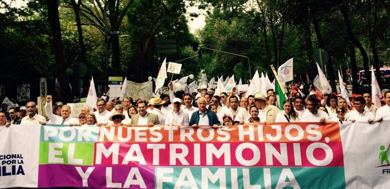 Encorajada pelos setores mais conservadores da hierarquia católica, a manifestação representa um direto no fígado do presidente Enrique Peña Nieto. Quando ele apresentou em maio sua proposta para apoiar constitucionalmente o casamento gay (já aceito pela Suprema Corte), ninguém esperava uma reação tão fulminante. Mas a Igreja, sob a liderança do obscuro cardeal Norberto Rivera, aproveitou o mau momento do presidente, cuja popularidade está em seu ponto mais baixo, para pôr em marcha uma intensa campanha de agitação. A partir dos púlpitos e publicações eclesiais foi atiçado um movimento ultraconservador que se organizou em torno da chamada Frente Nacional da Família. Esse grupo defende, como podia ser comprovado com extrema facilidade pelo que se dizia na marcha, que a homossexualidade é reversível; a transexualidade, uma doença mental, e que os anticoncepcionais provocam esterilidade.