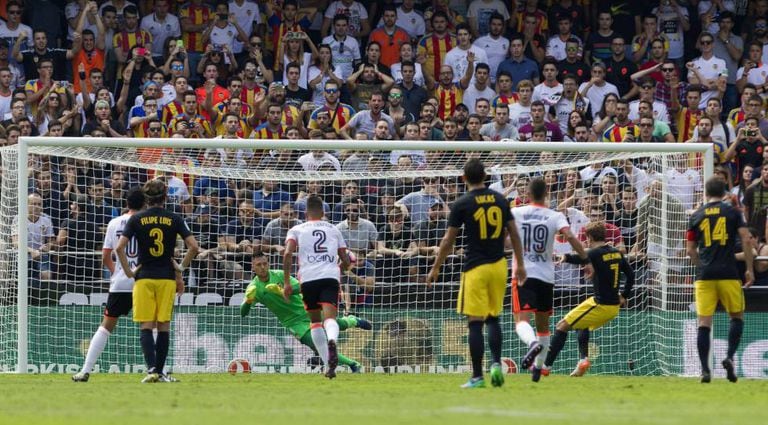 Uma semana depois de alcançar o recorde de pênaltis defendidos no Campeonato Espanhol, ao barrar a cobrança feita por Szymanowski, do Leganés, Diego Alves repetiu a façanha – e duas vezes. Desta vez no Mestalla, a casa do Valencia, contra nada menos que o Atlético de Madri, com dois batedores da categoria de Griezmann e Gabi. O brasileiro fez o que melhor sabe fazer e parou os dois chutes da marca dos 11 metros – defesas insuficientes, no entanto, para evitar a derrota por 2 x 0.