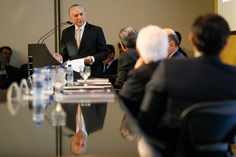 Em sua fala direcionada a uma plateia amistosa a ele, formada por banqueiros, economistas, empresários, investidores e industriais, Temer disse que sente que tem se restabelecido um clima de confiança no país. Citou, por exemplo, a melhora nos valores de mercados de algumas empresas públicas e privadas como a Petrobras, Banco do Brasil, Eletrobrás, Usiminas e Gol. “A superação dessa crise tão aguda exige um cuidado, um trabalho extraordinário que nos permita seguir adiante. E me permita dizer que esse é um ciclo perverso que estamos desmontando”, disse o presidente.
