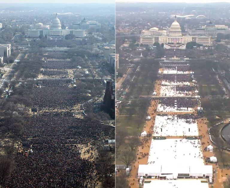 Trump chega à Casa Branca como o novo presidente mais impopular em quatro décadas, sob a marca da divisão social que ele mesmo atiçou durante a campanha, e entre protestos na rua e um boicote de dezenas de congressistas do Partido Democrata. Os EUA não o recebem com entusiasmo. Sua rival nas eleições, Hillary Clinton, obteve quase 3 milhões de votos de vantagem, e Trump só ganhou graças ao sistema de eleição presidencial baseado na contagem de votos por estados em vez do voto popular absoluto. Desde que Nixon assumiu o segundo mandato, em 1973, não se via uma posse tão tensa como essa. Nixon acabou destituído um ano e meio depois.
