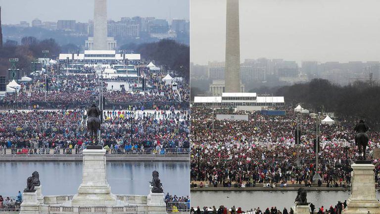 As mesmas avenidas que Donald Trump não conseguiu encher no dia de sua posse como presidente número 45 dos Estados Unidos foram tomadas neste sábado, 24 horas depois, por centenas de milhares de pessoas insatisfeitas com o novo ocupante da Casa Branca. Mais de meio milhão de manifestantes, segundo os organizadores, marcharam por Washington D. C. para mostrar a Trump, desde o primeiro dia de seu mandato, que há um Estados Unidos que não está de acordo com sua visão escura e com a agenda ultraconservadora do seu governo. Exigem que, como presidente de todos, respeite as mulheres, as minorias, os imigrantes e os direitos civis. Outras dezenas de milhares de pessoas marcharam em outras cidades, como Nova York, Chicago, Boston e Atlanta, em um protesto que também teve réplicas em outras partes do mundo, de Berlim e Londres a Sydney e Cidade do Cabo.