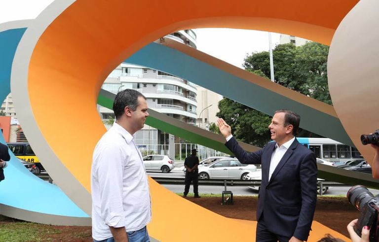 Como um apresentador de TV que chama o intervalo para anunciar o patrocinador da atração, João Doria conta em um vídeo postado em seu Facebook que a Prefeitura de São Paulo acaba de recuperar o monumento à Imigração Japonesa, da artista Tomie Ohtake, com uma pintura renovada que o livrou dos rabiscos pichados. "O monumento foi recuperado em cinco dias com patrocínio privado, 100% de patrocínio, feito pela AkzoNobel, empresa holandesa responsável no Brasil pelas tintas Coral", diz ele, numa voz empostada que não deixa esquecer o passado diante das câmeras do novo prefeito da cidade. Neste primeiro mês no comando da gestão municipal, esta foi uma das nove atividades que ele anunciou em parceria com a iniciativa privada até agora, uma promessa de campanha, para implementar ações de "custo zero aos cofres públicos", conforme explica.
