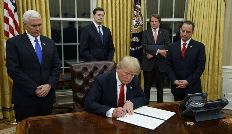 Esse movimento do Governo de Trump é o último passo de uma batalha judicial que começou 10 dias antes, quando o presidente promulgou uma ordem executiva (decreto) que suspendia os vistos de sete países de maioria muçulmana (Irã, Iraque, Iêmen, Síria, Líbia, Somália e Sudão) e por tempo indeterminado a acolhida a refugiados sírios. A ordem provocou o caos em aeroportos em que os cidadãos desses países ficaram encalhados na origem de suas viagens porque as companhias aéreas não os aceitaram ou na Alfândega, onde número indeterminado de pessoas passou dias inteiros esperando que as deixassem entrar nos Estados Unidos.
