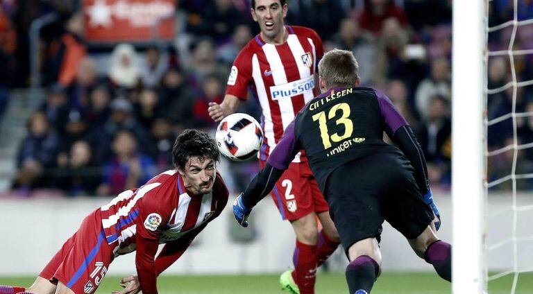A partida se transformou em um diálogo do Atlético com o goleiro Cillessen. A bola ou estava nas mãos do goleiro dos catalães ou com os rapazes de Simeone. Os pontas do Barça não entravam no jogo, especialmente Denis Suárez, fora de sintonia, nem Messi aparecia. Mal posicionados e sem mando do meio-campo, os erros individuais eram contínuos entre os jogadores do Barcelona. Ninguém finalizava uma jogada e as muitas perdidas possibilitavam as chegadas constantes do Atlético. O Barcelona era uma gelatina em um Camp Nou semi-vazio.