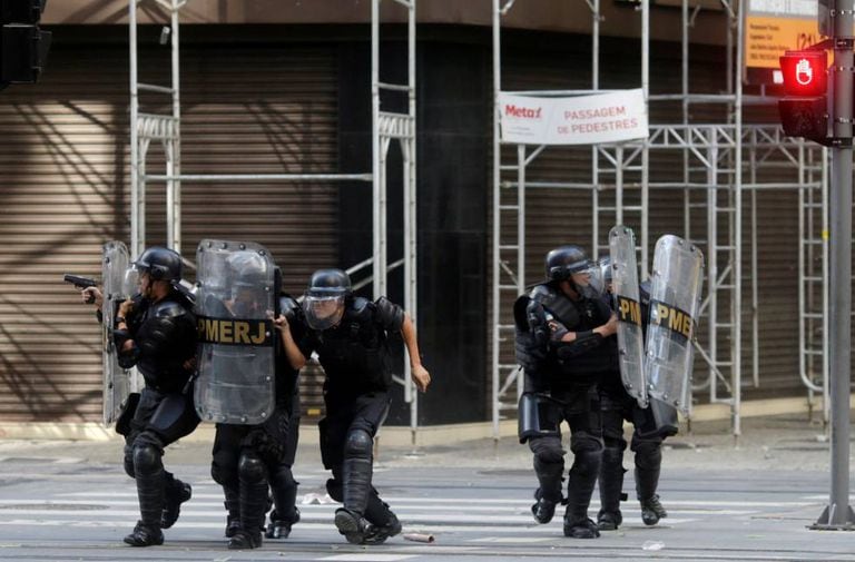 O centro do Rio de Janeiro voltou a se tornar um campo de batalha entre manifestantes e policiais militares em um novo protesto contra as medidas de austeridade propostas pelo Governo do Estado. Servidores públicos, sobretudo da área de segurança pública, concentraram-se na frente da Assembleia Legislativa (Alerj) e se juntaram dessa vez com os trabalhadores da Companhia Estadual de Água e Esgoto (Cedae), que deve ser privatizada pelo Estado como contrapartida a um resgate financeiro negociado com a União. Como já é habitual, o protesto acabou em confusão com PMs jogando bombas contra os servidores e manifestantes revidando com rojões e fogos de artifício. Os próprios policiais em serviço durante a manifestação acabaram se desentendendo entre eles após a Tropa de Choque jogar bombas de gás contra os colegas.