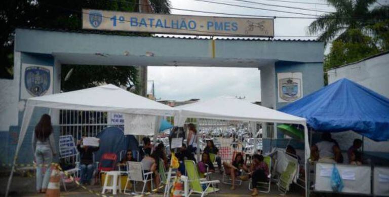 Foi o que aconteceu na manhã deste sábado. Mulheres de policiais continuam acampadas em frente a batalhões em Vitória, mesmo depois das 7h, prazo que o Governo deu aos PMs para voltarem às atividades sem punição. Alguns agentes chegaram a tentar convencer as que acampam na frente do Quartel Central da capital capixaba a desobstruírem a saída por volta das 8h. "Estamos a flor da pele. A gente precisa sair, alguém precisa renunciar", disse uma subtenente.
